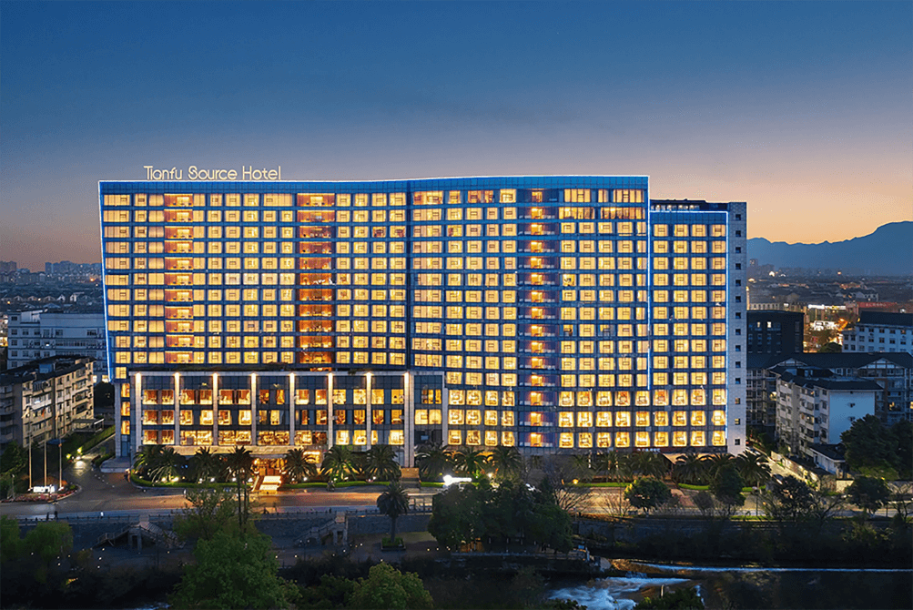 ? ? ? ?天府之源酒店是一家按照五星級標準打造的高品質商務酒店。地處都江堰市中心商務核心地段,距離都江堰景區2公里、青城山景區20公里。酒店擁有311間寬敞豪華的客房及套房,中餐廳、自助餐廳、特色餐廳和宴會廳;還設有室內恒溫游泳池、健身房及棋牌室。同時酒店配有各型會議室及多功能廳,專業的會議服務團隊全程跟進,滿足各類商務活動需求,是各種行業年會、董事會、主題宴會及高級別培訓的理想場所。